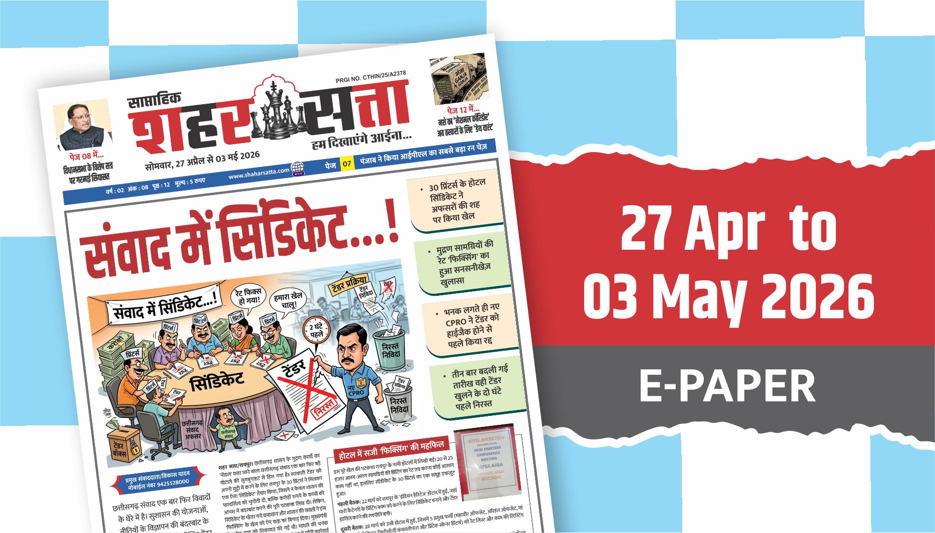 नियमित मासिक चुंगी क्षतिपूर्ति के 11.14 करोड़ का भी आबंटन शहर सत्ता/रायपुर। (Chhattisgarh Urban Services)होली के पहले निकाय कर्मियों को वेतन भुगतान के लिए मानवीय सरोकार के साथ पहल करते…