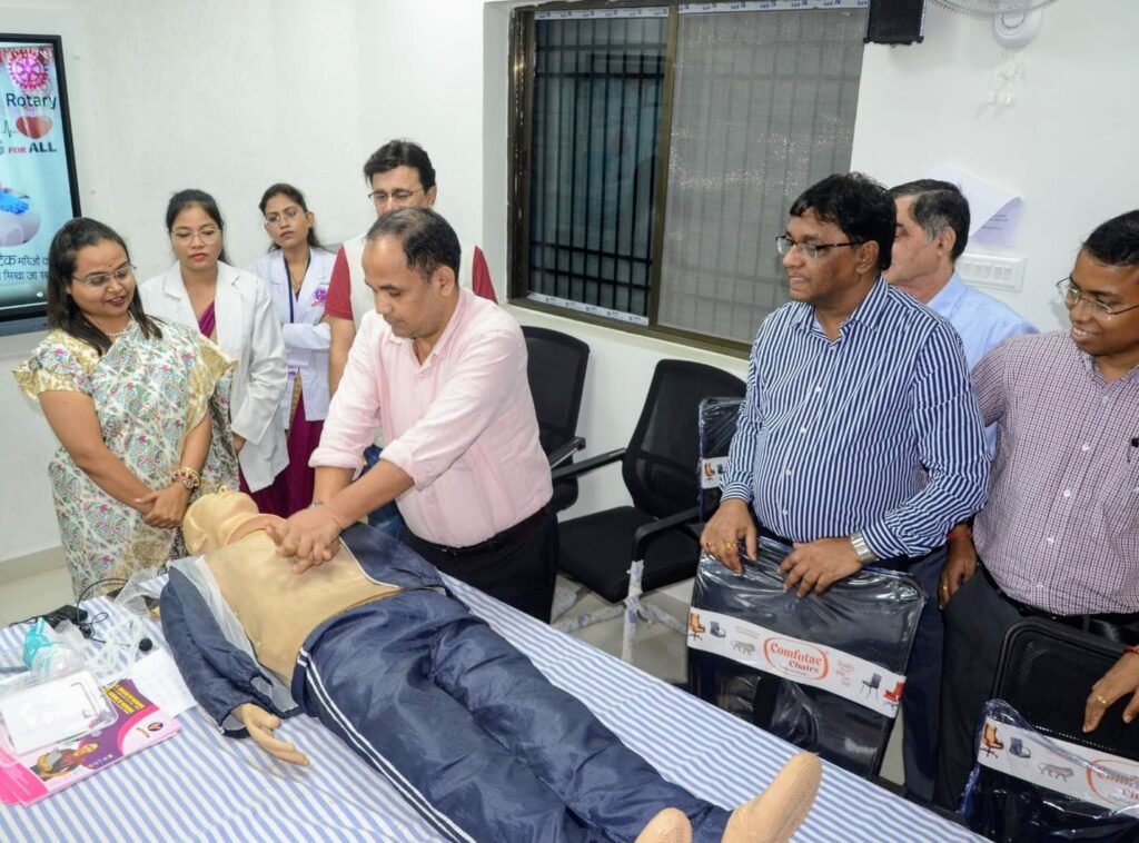 शहर सत्ता/रायपुर। (Project Security In Raipur) कलेक्टर डॉ. गौरव सिंह के निर्देशानुसार आज कलेक्टोरेट स्थित बीपीओ सेंटर, मल्टीलेवल पार्किंग में रेडक्रॉस के सहयोग और छत्तीसगढ़ कॉलेज ऑफ नर्सिंग के तकनीकी सहयोग से “प्रोजेक्ट सुरक्षा” के तहत जिला स्तरीय अधिकारियों हेतु आपातकालीन स्थिति में प्राथमिक उपचार और जीवन रक्षक उपायों पर विशेष प्रशिक्षण सत्र आयोजित किया गया। कार्यक्रम में CPR की तकनीक एवं फर्स्ट एड के ज़रूरी एवं प्रभावी बचाव के तरीके विस्तार से बताए गए, ताकि ज़रूरत के समय त्वरित और सटीक सहायता दी जा सके।