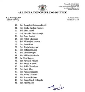 AICC ने इन 3 सीनियर लीडर्स के अलावा सभी जिलों के लिए 41 डिस्ट्रिक्ट इलेक्शन आब्जर्वर नियुक्त किए हैं।