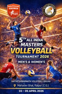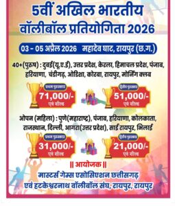 शहर सत्ता/रायपुर। (All India Masters 40+ Volleyball Tournament)आल इंडिया मास्टर्स 40+वॉलीबॉल टूर्नामेंट की सभी तैयारी श्री हटकेश्वर नाथ बाॅलीबाल क्लब ने कर ली है। संभवतयः दुबई और भारत के चार राज्यों से वॉलीबॉल टीम के खिलाडियों का राजधानी रायपुर आगमन होगा। पिछले पांच सालों से वॉलीबॉल को प्रोत्साहन देने और 40 उम्र पार कर गए खिलाडियों को नकद पुरुस्कार राशि देकर श्री हटकेश्वर नाथ बाॅलीबाल क्लब प्रयासरत है।