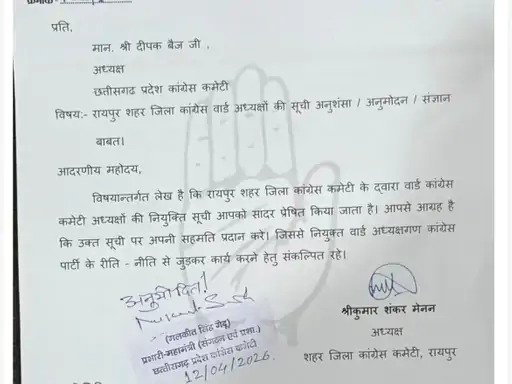 पीसीसी चीफ दीपक बैज ने सभी जिलाध्यक्षों को बूथ स्तर से लेकर जिला कांग्रेस कमेटी की नई कार्यकारिणी 15 अप्रैल तक गठित करने के निर्देश दिए थे। इसी दौरान रायपुर शहर कांग्रेस ने 66 वार्ड अध्यक्षों की सूची जारी कर दी थी, लेकिन कुछ ही घंटों के भीतर पीसीसी ने इस सूची को निरस्त कर दिया था। पीसीसी की ओर से स्पष्ट किया गया था कि वार्ड अध्यक्ष और कार्यकारी अध्यक्षों की सूची जारी करने से पहले आवश्यक मंजूरी नहीं ली गई थी, इसलिए इसे अवैधानिक माना गया।